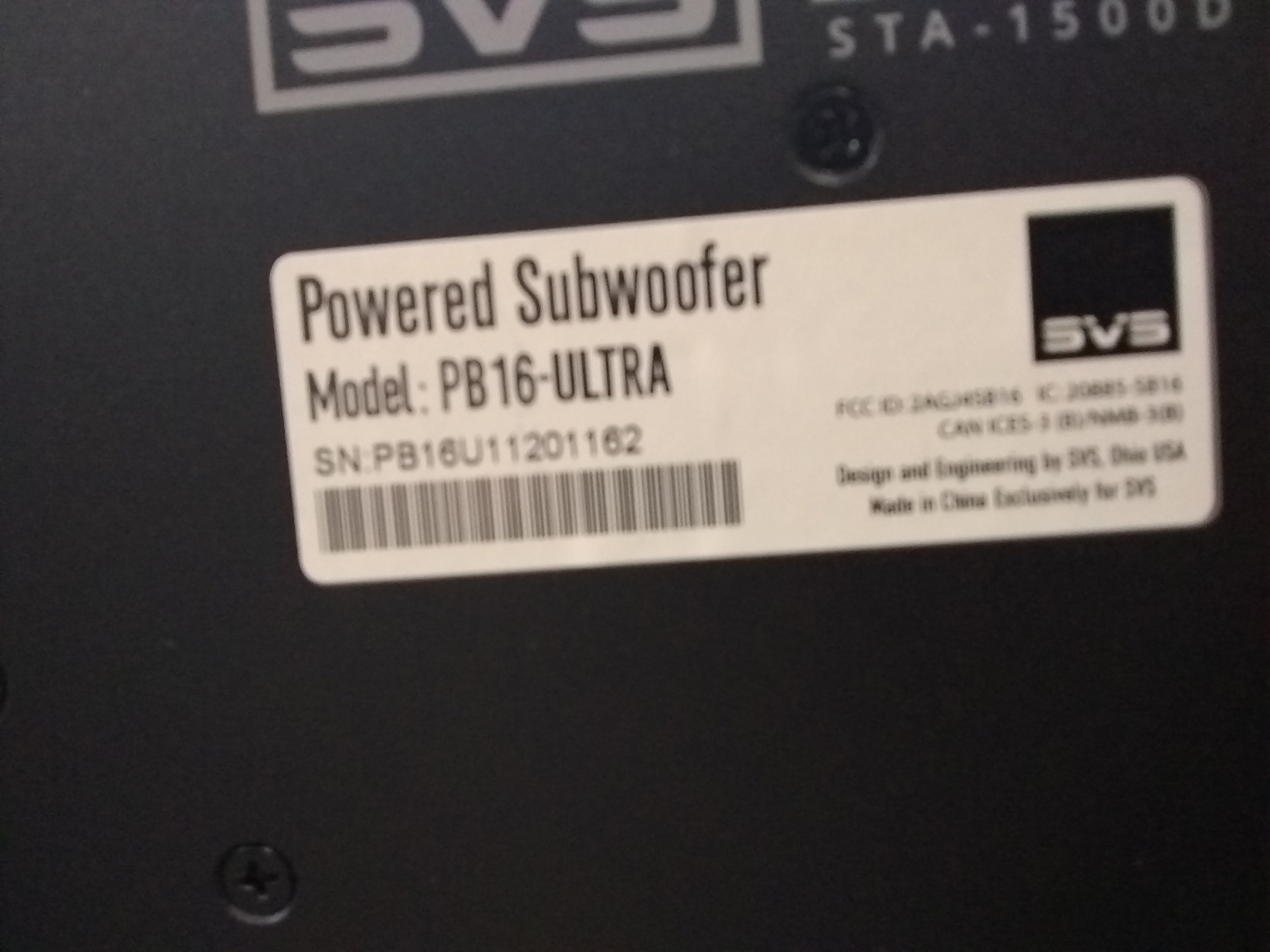 - SVS 16” Ultra-series driver