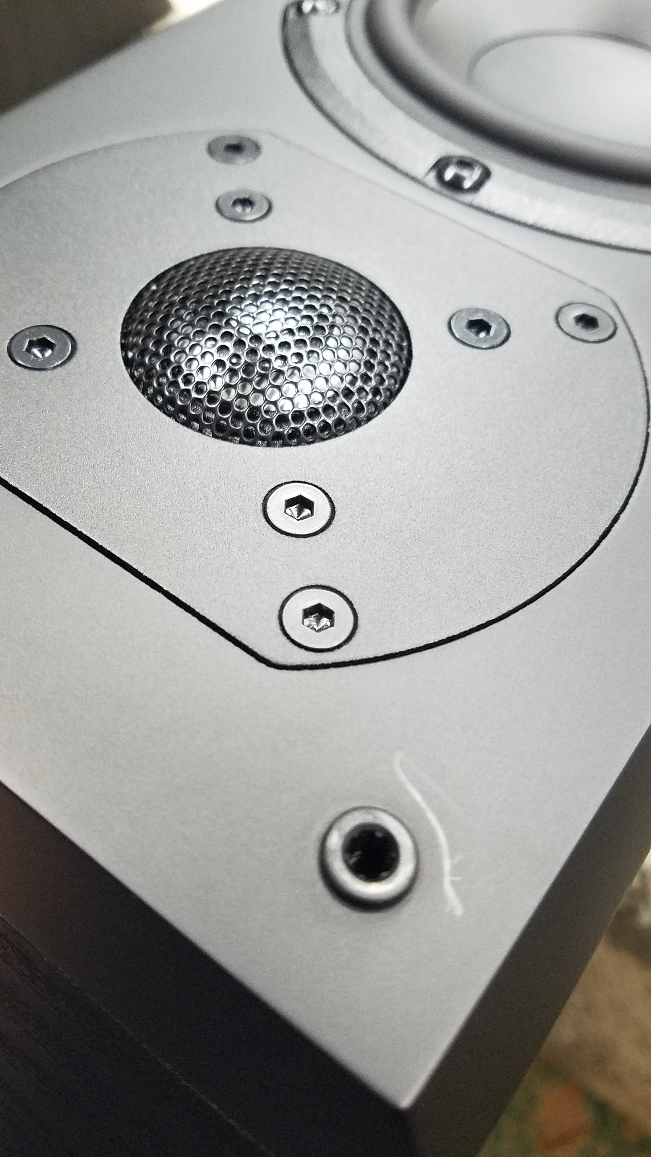 - Chamfered front baffle and flush-mounted drivers reduce edge diffraction and improved off-axis high frequency response